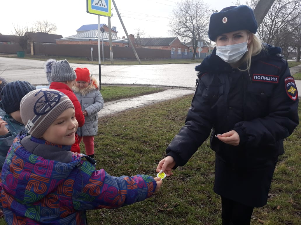 Сотрудники Госавтоинспекции Щербиновского района поговорили с воспитанниками детского сада о пользе световозвращающих элементов на одежде, также наглядно показали детям как правильно переходить дорогу, и отметили, что даже если горит зеленый сигнал светофора, необходимо сначала посмотреть по сторонам, прежде чем ступать на проезжую часть.