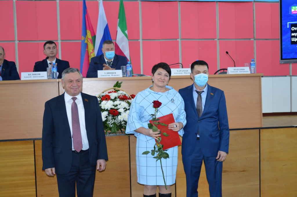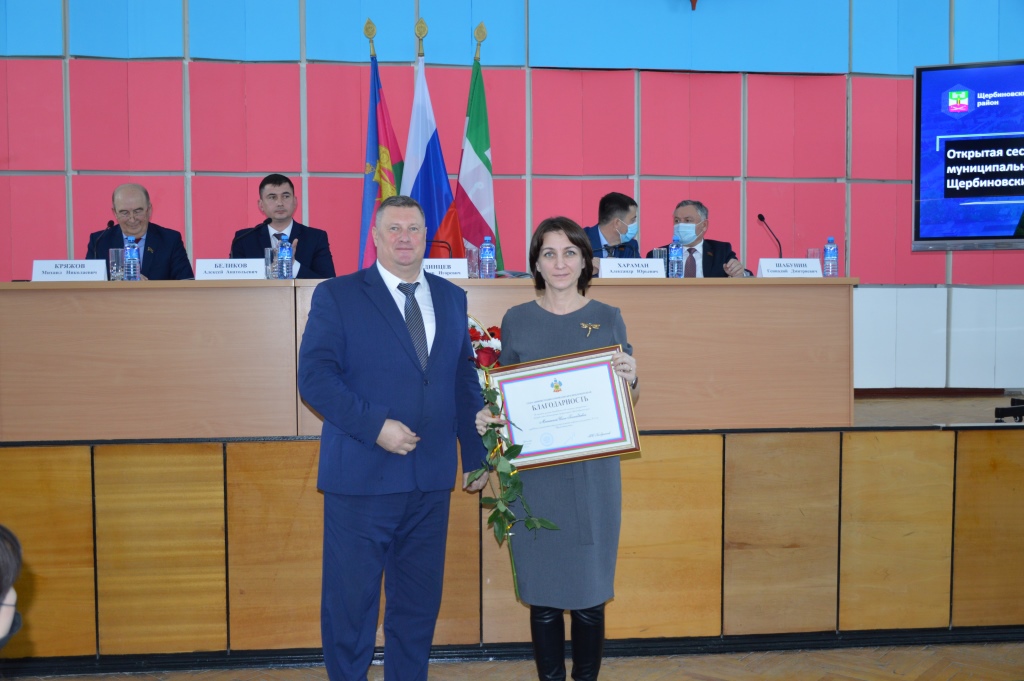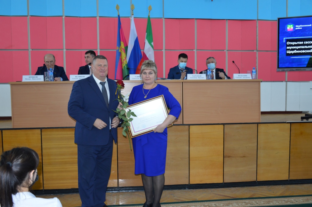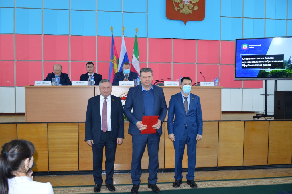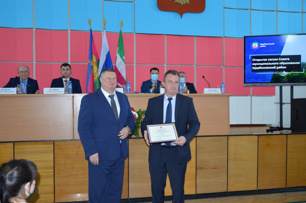 В администрации района состоялась открытая сессия Совета муниципального образования Щербиновский район.В работе сессии приняли участие заместитель министра курортов, туризма и олимпийского наследия Краснодарского края Святослав Удинцев, депутаты Законодательного Собрания Краснодарского края Александр Хараман и Геннадий Шабунин, глава Щербиновского района Алексей Беликов, председатель Совета муниципалитета Михаил Кряжов. В заключение сессии состоялась церемония награждения. За большой личный вклад в работу по подготовке и проведению общероссийского голосования по вопросу одобрения изменений в Конституцию Российской Федерации Благодарность Президента Российской Федерации объявлена Анченко Елене, председателю участковой избирательной комиссии избирательного участка № 57-13 с. Ейское Укрепление. Почетной грамотой администрации Краснодарского края за 3-е место по итогам краевого смотра-конкурса на звание лучшего поселения Краснодарского края и за эффективную работу органов местного самоуправления поселений по решению вопросов местного значения награжден Ченокалов Дмитрий - глава Щербиновского сельского поселения. За активное участие в проведении особо значимого мероприятия – выборов главы администрации (губернатора) Краснодарского края Благодарность главы администрации (губернатора) Краснодарского края объявлена Мякшиной Инне – председателю участковой избирательной комиссии избирательного участка № 57-07 ст. Старощербиновская, Скляровой Наталье– председателю участковой избирательной комиссии избирательного участка № 57-10 п.Щербиновский. За заслуги в отрасли агропромышленного комплекса дипломами администрации Краснодарского края награждены победители конкурса профессионального мастерства в животноводстве и рыбохозяйственном комплексе: - В номинации «Лучший главный зоотехник сельскохозяйственной организации» Белобров Николай, заместитель председателя по зоотехнической работе – главный зоотехник СПК (колхоза) «Знамя Ленина»; - В номинации «Лучший заведующий молочно-товарной фермой» Харечко Наталья, заведующий молочно-товарной фермой № 8 СПК (колхоза) «Знамя Ленина». Также, депутаты ЗСК Александр Хараман и Геннадий Шабунин вручили благодарственное письмо Александру Арашкевич за добросовестный труд, активную общественную деятельность и вклад в развитие местного самоуправления в Щербиновском районе. За добросовестный труд, милосердие, заботу, личный вклад в сохранение и укрепление здоровья сельского населения в период пандемии новой коронавирусной инфекции COVID-19 благодарственное письмо постоянного комитета Законодательного Собрания Краснодарского края вручено Наталье, Подорожко главной медицинской сестре «Щербиновской центральной районной больницы» и Алексею Унярха, врачу-урологу поликлиники «Щербиновской центральной районной больницы».