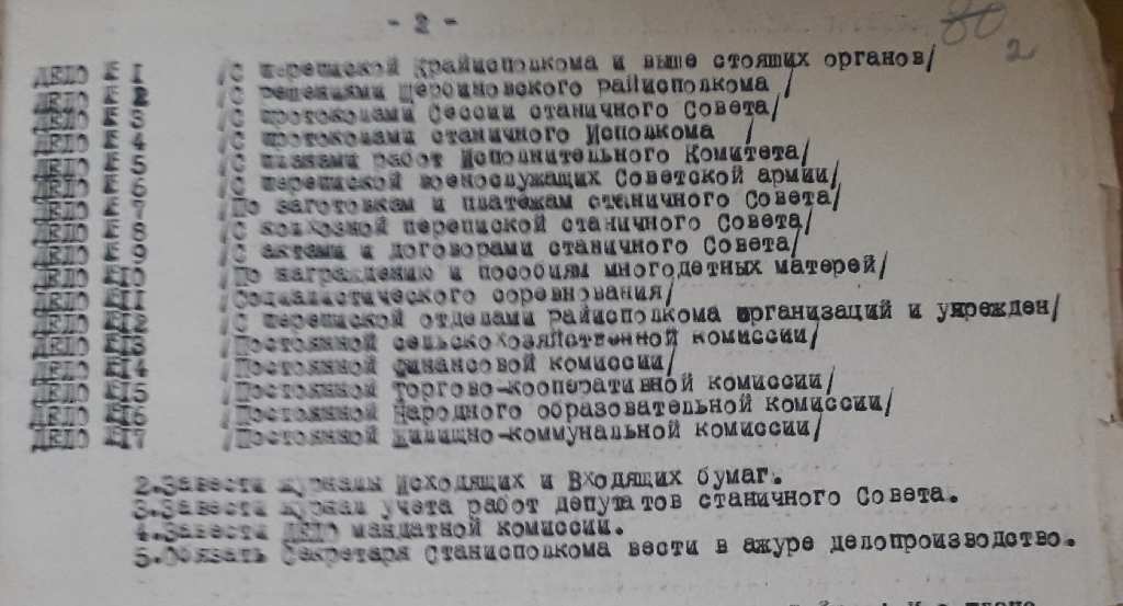 О важности ведения делопроизводства и обеспечения сохранности документов в послевоенное время свидетельствует решение, принятое исполнительным комитетом Старощербиновского станичного Совета депутатов трудящихся от 5 января 1948 года № 9: