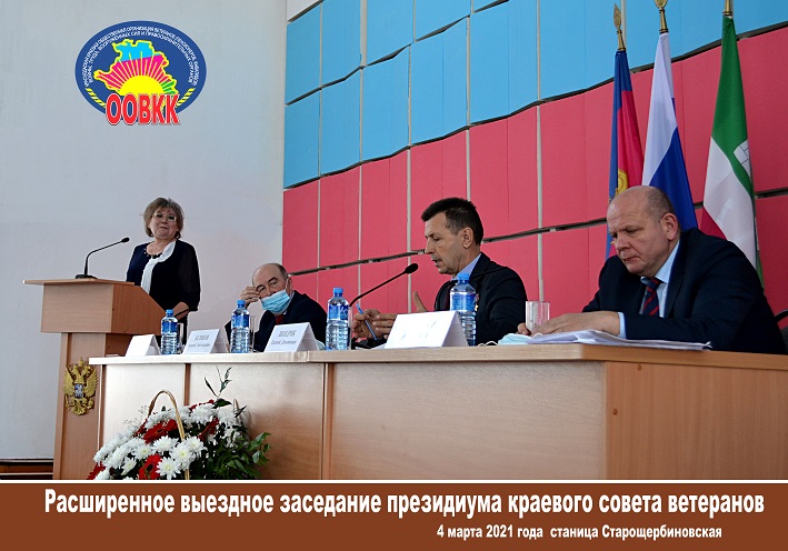4 марта 2021 года в станице Старощербиновской состоялось расширенное выездное заседание президиума краевого совета ветеранов. В работе заседания приняли участие председатель краевого совета ветеранов, Герой Российской Федерации Евгений Шендрик, глава Щербиновского района Алексей Беликов, председатель Щербиновского районного совета ветеранов Михаил Кряжов, актив краевого совета ветеранов, представители администрации Щербиновского района, молодёжь района.