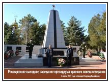 Первый заместитель председателя краевого совета ветеранов Сергей Сафонов ознакомил участников президиума с Положением о проведении смотра – конкурса районных, городских и окружных советов ветеранов, посвящённого 35-ти летию образования Краснодарской краевой общественной организации ветеранов (пенсионеров, инвалидов) войны, труда, Вооружённых Сил и правоохранительных органов. Целью смотра – конкурса является активизация работы местных советов ветеранов, выявление лучших советов Организации, изучение и использование их опыта работы, как в целом, так и по отдельно взятым направлениям деятельности, укрепление взаимодействия и социального партнёрства местных советов ветеранов с органами местного самоуправления, совершенствование организационной работы местных советов ветеранов.