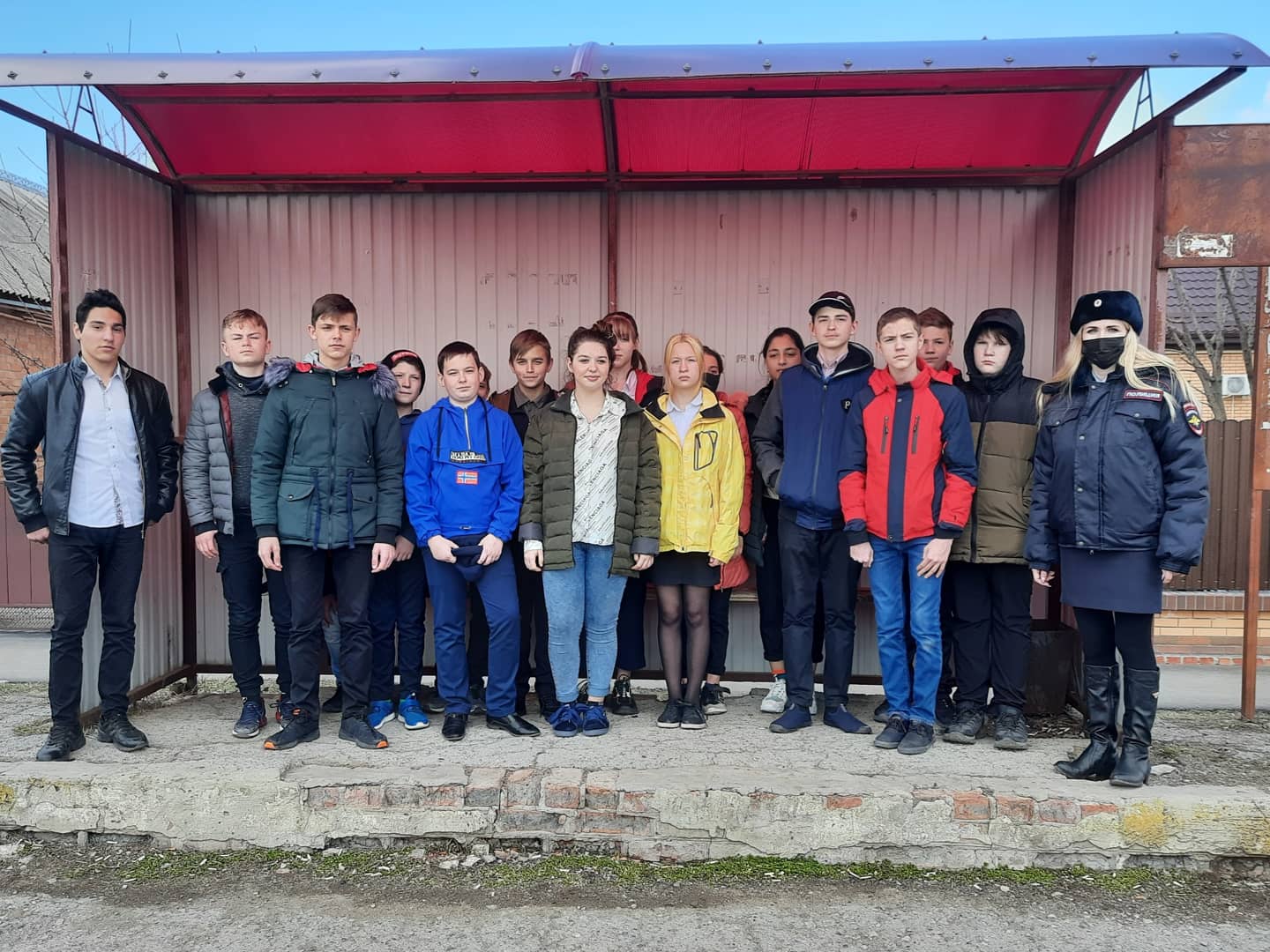 Сотрудники Госавтоинспекции Щербиновского района вместе со школьниками проложили безопасный маршрут к ближайшей остановке общественного транспорта, чтобы провести с учащимися инструктаж о правилах поведения на остановке общественного транспорта.
