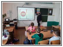В ходе встречи инспектор рассказала учащимся о том, как правильно вести себя на дорогах, пешеходных переходах и в общественном транспорте, напомнила одно из главных правил — пешеходу запрещается выходить на проезжую часть дороги, не убедившись в личной безопасности.