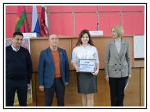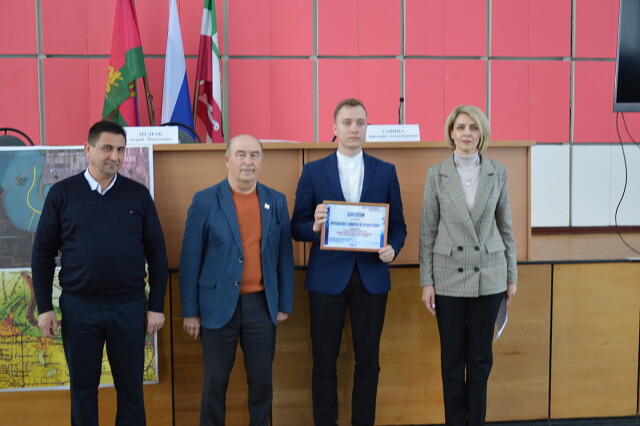 Сегодня на совместном заседании постоянных комиссий Совета муни-ципалитета исполняющий полномочия главы района Виктория Савина, председатель Совета муниципалитета Михаил Кряжов и председатель комиссии по бюджету и экономическому развитию района Совета Андрей Мудрак вручили заслуженные награды победителю и финалистам конкурса. Победителем конкурса признана Белоглазова Дарья - лидер ученического СОШ № 5 имени Героя Советского Союза Ивана Петровича Рыбина станицы Старощербиновской.