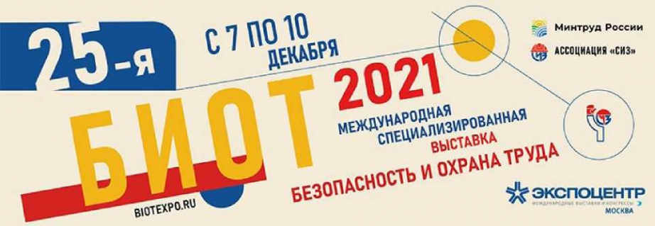 Министерством труда и социальной защиты Российской Федерации совместно с Министерством промышленности и торговли Российской Федерации, Министерством экономического развития Российской Федерации, Федеральной службой по труду и занятости, Российским союзом промышленников и предпринимателей, Торгово-промышленной палатой России, Фондом социального страхования Российской Федерации, Европейской Федерацией Безопасности, Ассоциацией разработчиков, изготовителей и поставщиков средств индивидуальной защиты проводится ХХV юбилейная Международная специализированная выставка «Безопасность и охрана труда – 2021» (далее – БиОТ – 2020) с 7 по 10 декабря 2021 года в г. Москва, в Центральном выставочном комплексе «Экспоцентр» на Краснопресненской набережной.