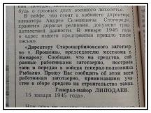 «Далеко позади остались тяжелые годы войны, в канун 30-летия Великой Победы, неожиданно напомнит что-нибудь о грозных днях военного лихолетья. В сейфе что, стоит в кабинете директора элеватора Андрея Семеновича Сковороды, хранится дорогая реликвия, документ тридцатилетней давности. В январе 1945 года в адрес нашего предприятия пришло такое письмо: