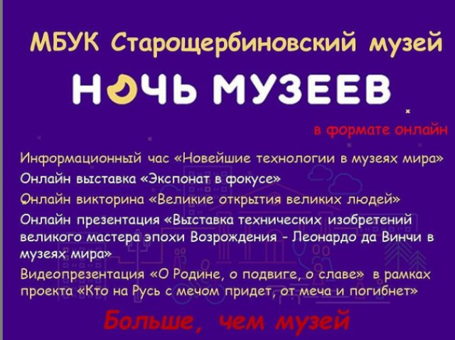 15 мая состоится традиционная акция "Ночь музеев". В этом году она пройдет в онлайн формате - на официальной странице Инстаграм и сайте музея. Мероприятия акции посвящены году науки и технологий и пройдут под девизом "Больше, чем музей".