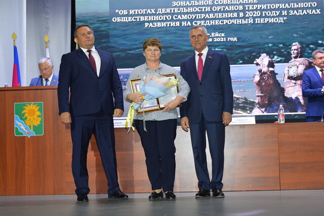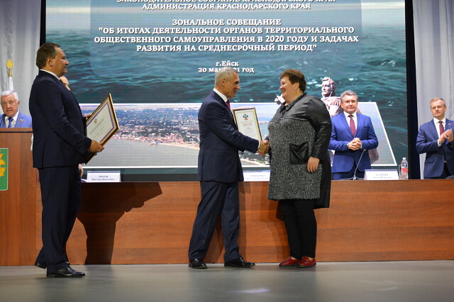 Сегодня в городе Ейске подвели итоги краевого конкурса на звание «Лучший орган территориального общественного самоуправления» в 2020 году. Делегация муниципалитета, в состав которой вошли исполняющий полномочия главы района Виктория Савина, депутат Законодательного Собрания края Александр Хараман, председатель Совета муниципального образования Щербиновский район Михаил Кряжов и руководители органов ТОС - победители конкурса, приняла участие в торжественном мероприятии.