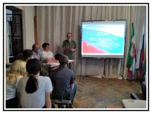 Младшим научным сотрудником, председателем УИК избирательного участка № 57-07 Инной Геннадьевной Мякшиной представлена лекция «История парламентаризма в России». Были актуализированы знания ребят о современном Российском парламенте – Федеральном Собрании – его структуре и о том, кто в настоящее время занимает ключевые посты. Кроме того, ребята узнали о том, как проходило народное вече в Новгородском княжестве, о Земских соборах, о заседании первой Государственной Думы в 1906 году и ее возрождении в 1993 году.