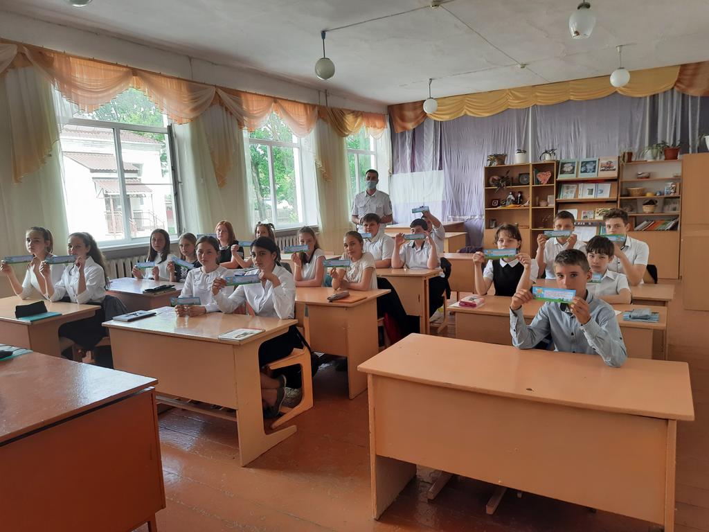 В рамках проекта "Безопасность дорожного движения, профилактических мероприятий "Внимание - Дети", в целях предупреждения дорожно-транспортного травматизма, а также в преддверие летних каникул Госавтоинспекторы с учащимися МБОУ СОШ 8 села Николаевка и МБОУ ООШ 4 хутора Любимов провели акцию «Добрая дорога детства советует».