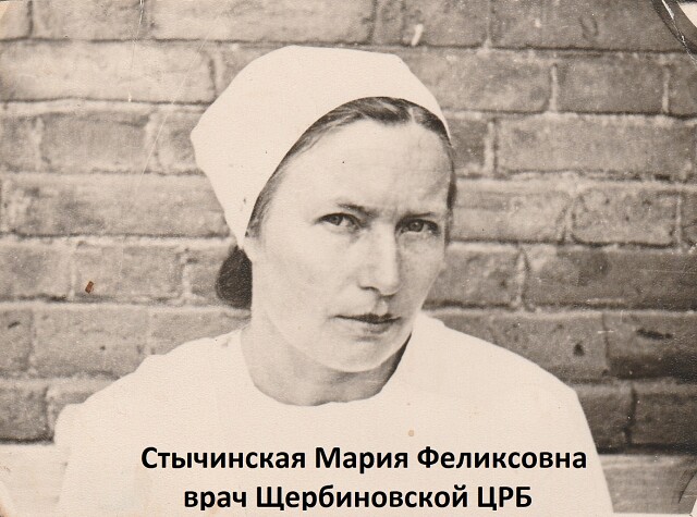 В год 76-й годовщины со дня Победы в Великой Отечественной войне, наряду с подвигами солдат и офицеров, нельзя не отметить героизм и отвагу советских медработников. Благодаря их труду, около 70 % раненых были возвращены в строй. Ради спасения жизней военнослужащих, медики рисковали своими. Они не получили столько наград, сколько воины, но заслужили людскую благодарность и память. В Щербиновской районной больнице работало много врачей и медсестер фронтовиков. К сожалению, сведения о них сейчас приходится собирать по крупицам. Но память об этих удивительных людях живет. До сих пор добрым словом вспоминают станичники врача Щербиновской ЦРБ, участника Великой Отечественной войны Марию Феликсовну Стычинскую.