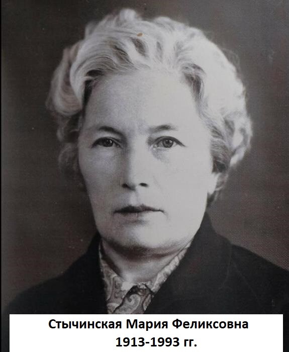 Вот как рассказывает о ней жительница станицы Старощербиновской медсестра В.П…. (1939 г.р.): «Когда Мария Феликсовна Стычинская работала в больнице, я была еще молодой медсестрой. Могу сказать, что она была особенным человеком. Очень честная, прямая, скромная. Она была очень добра к людям. Мария Феликсовна была очень грамотным врачом. А о том, какая у нее была добрая душа, я узнала, когда сама заболела. Я была напугана своим диагнозом, мне казалось, что жизнь кончилась. Мария Феликсовна пришла ко мне в палату, начала успокаивать. Она нашла слова, чтобы привести меня в чувство. Разговаривала со мной так тепло, душевно. Убеждала так, чтобы до меня дошло, что надо бороться с болезнью, лечиться и жить. И после этого разговора я как-то сразу успокоилась. Ведь мне это сказала сама Мария Феликсовна! А позже я узнала, что в тот момент, когда она меня успокаивала, она сама была серьезно больна. И она, как врач, понимая свой прогноз, имела силы возиться со мной, вселять в меня надежду и желание жить. Мария Феликсовна продолжала работать, сколько ей хватило сил. Как говорят: «до последнего». Помогать людям было ее потребностью. Всегда спокойная, ровная, доброжелательная, она пользовалась большим авторитетом у коллег и пациентов. Я прожила на свете уже много лет и могу с уверенностью сказать, что таких людей, как Мария Феликсовна, я больше в своей жизни не встречала. Она была очень настоящим человеком» (записано в 2021 году).