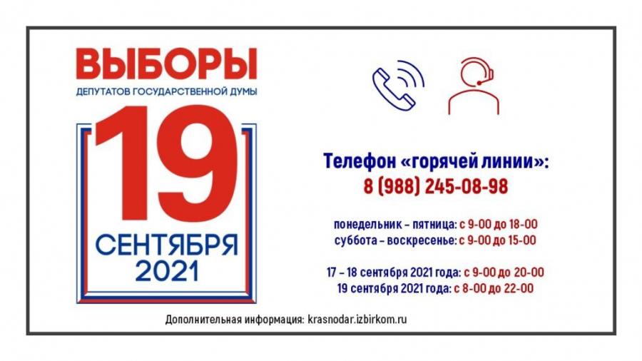 В период подготовки и проведения выборов депутатов Государственной Думы Федерального Собрания Российской Федерации восьмого созыва в избирательной комиссии Краснодарского края работает телефон «горячей линии» для избирателей и участников избирательного процесса.