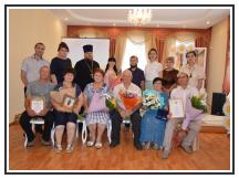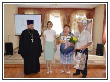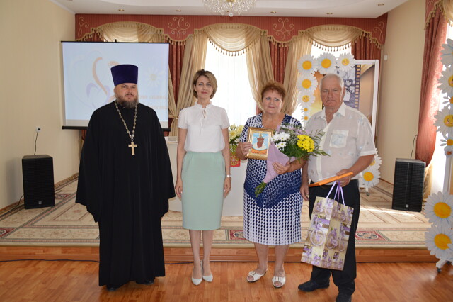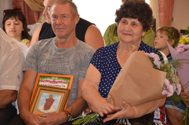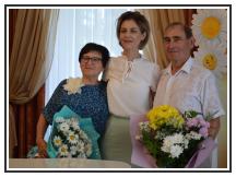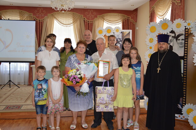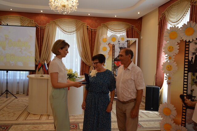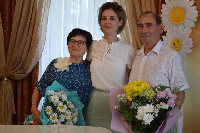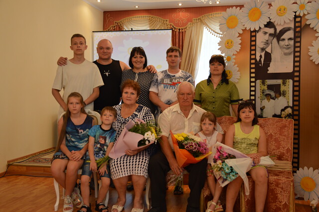 Именно «Любовь» дала возможность нашим юбилярам среди будничной суеты разглядеть того единственного, с кем вечность показалась мгновением. Супруги Губенко Александр Иванович и Надежда Ивановна живут в счастливом браке 35 лет, воспитали троих детей и двух внуков. Супруги Покусаевы в браке уже 46 лет, воспитали троих детей и внуков. Семья Прокопенко 19 июня текущего года отметили свою золотую свадьбу, воспитали двух дочерей и пять внуков.