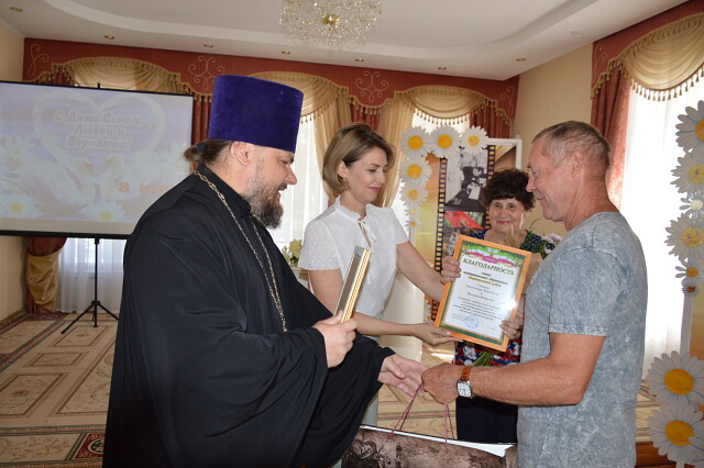 С прекрасным и светлым праздником семьи поздравили исполняющий полномочия главы района Виктория Савина и настоятель храма «Покрова пресвятой Богородицы» станицы Старощербиновской, отец Василий.