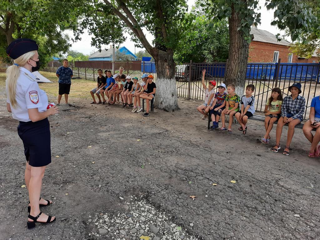 Сотрудники отдела ГИБДД Отдела МВД России по Щербиновскому району посетили лагерь дневного пребывания на базе МБОУ СОШ №10 станицы Новощербиновской