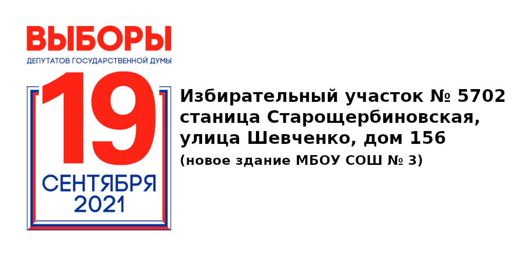 Избирательный участок № 57-02 находится по адресу: станица Старощербиновская, улица Шевченко, д. 156, телефон 7-78-63, (новое здание средней общеобразовательной школы № 3)