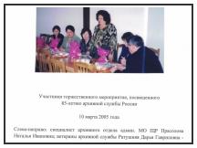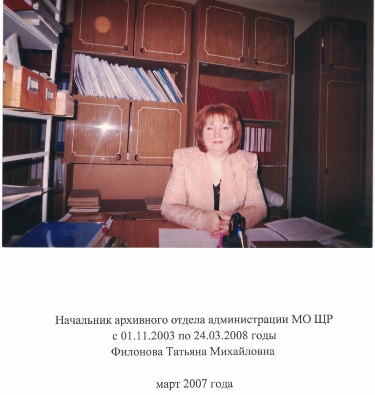 Большой вклад в развитие архивной службы внесли также руководители Филонова Татьяна Михайловна, Уварова Валентина Анатольевна, Турицына Наталья Юрьевна.