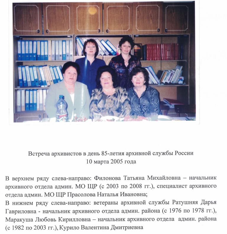 Более 20 лет, до самого ухода на заслуженный отдых, руководителем архивного отдела являлась Маракуша Любовь Кирилловна.