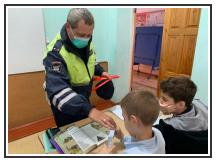 С наступлением осеннего времени года происходит уменьшение светового дня, поэтому особое внимание сотрудники ГИБДД уделили обязательному присутствию световозвращающих элементов на одежде и рюкзаках юных пешеходов.