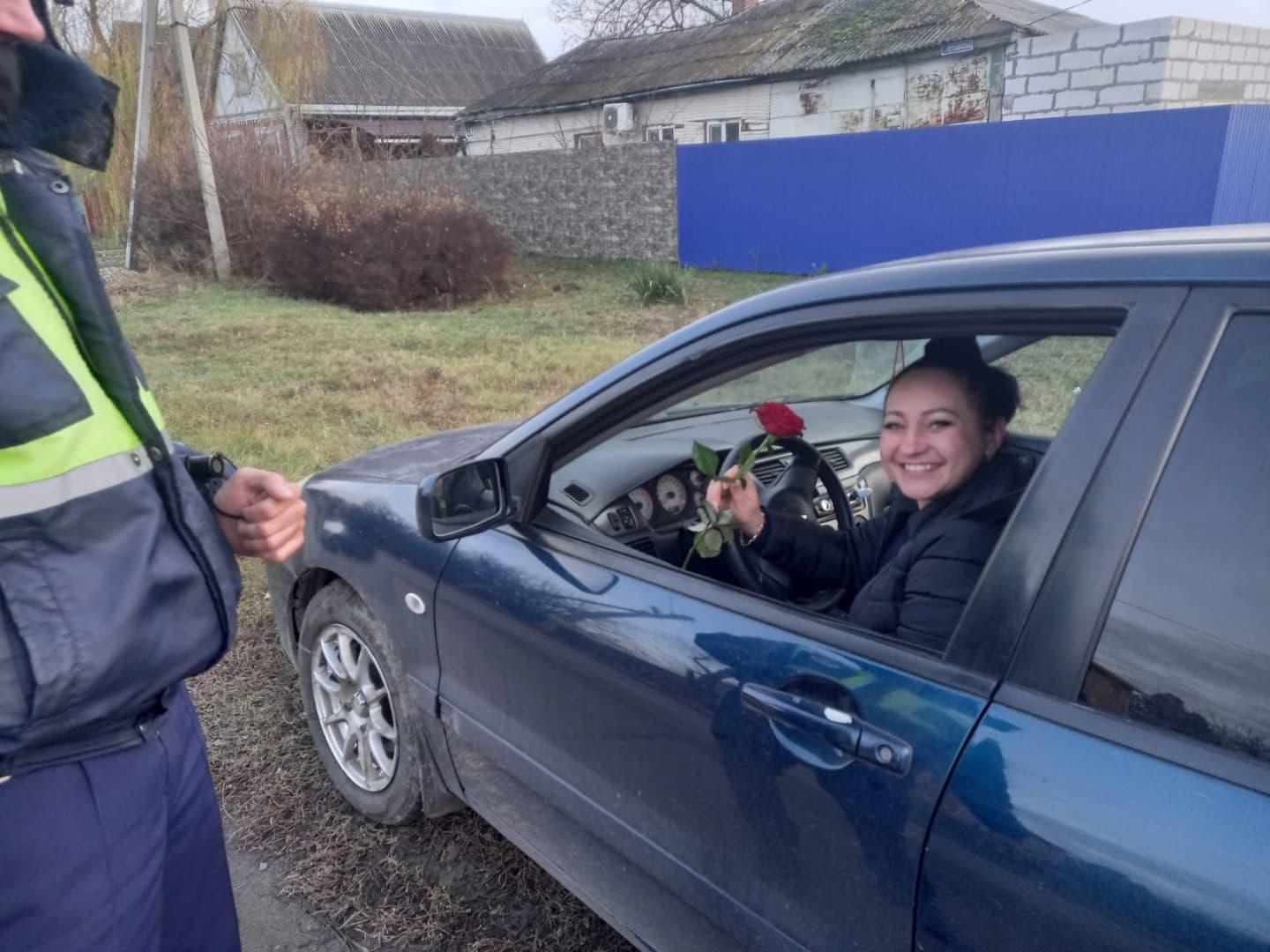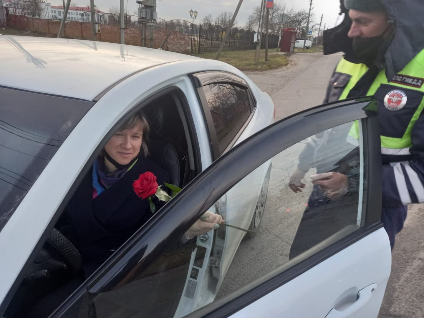 Женщин ждал неожиданный сюрприз: строгие в будние дни сотрудники Госавтоинспекции останавливали автомобиль вовсе не для проверки документов, а чтобы поздравить представительниц прекрасного пола с праздником.