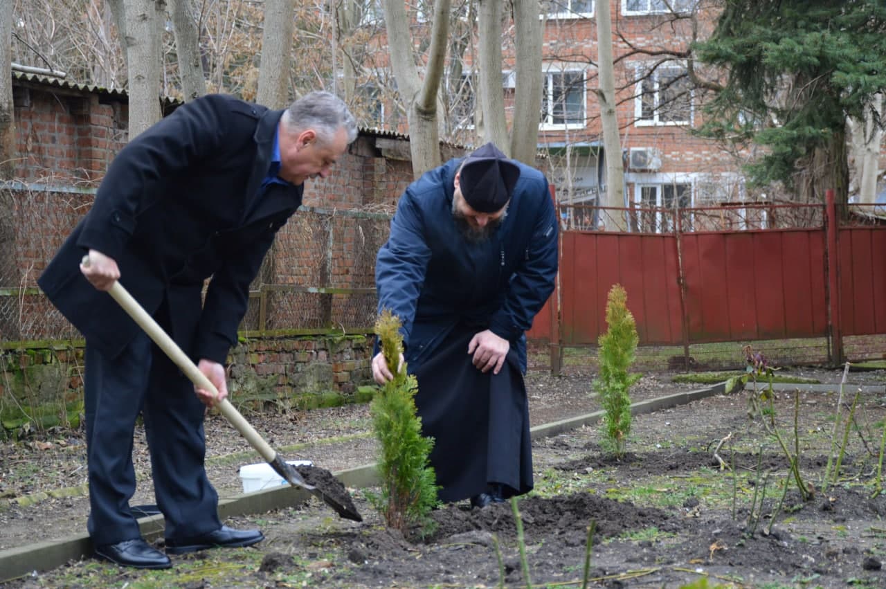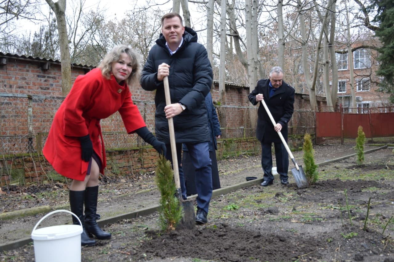 В память об ушедших Героях Отечествав в станице Старощербиновской высадили саженцы туи