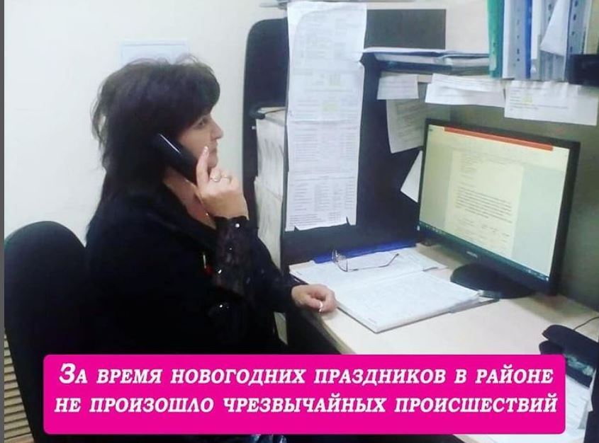 По информации Единой дежурно-диспетчерской службы района, в период праздников ( с 31 декабря по 10 января) чрезвычайных происшествий в районе не произошло. В Единую диспетчерскую службу и на пульт диспетчера системы «112» поступило более 1800 звонков. Служба спасения совершила 6 выездов по оказанию помощи жителям района. Крупных пожаров и ДТП в муниципалитете не зафиксировано. Благодарим все службы района за оперативную и слаженную работу в период новогодних праздников!
