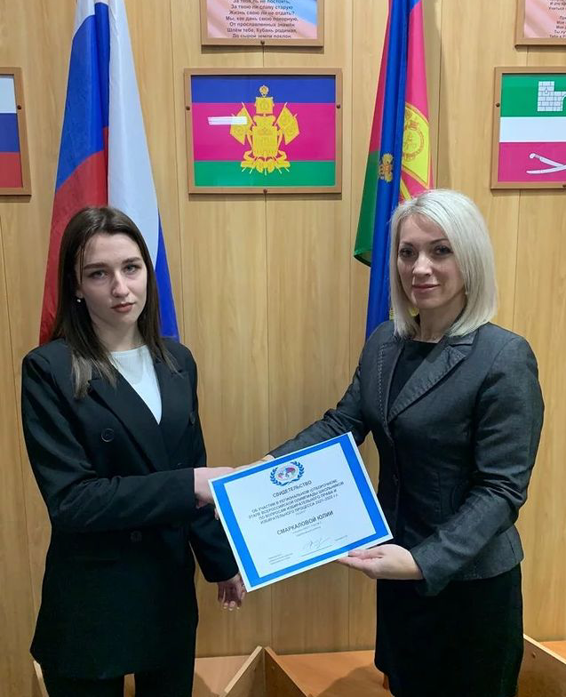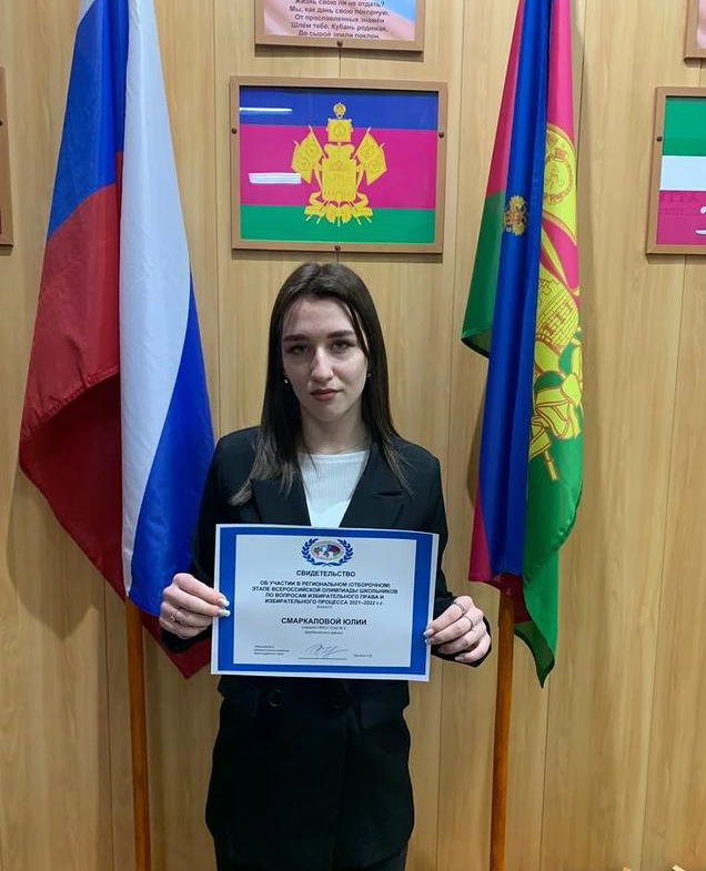 В соответствии с постановлением избирательной комиссии Краснодарского края лауреатом серии интеллектуальных игр «Избирательный марафон» признана Гурняк Екатерина Викторовна, учащаяся