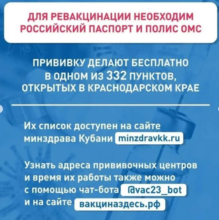 Количество заболевших ковидом с каждым днем растет. За последние сутки в крае подтверждено 925 случаев заболевания, в нашем районе - 3 новых случая за сутки. Всего в муниципалитете с начала пандемии зафиксировано 1 тысяча 361 случай заражения коронавирусной инфекцией. На сегодняшний день на лечении находятся 34 щербиновца. В муниципалитете продолжается прививочная кампания от COVID-19. 19 тысяч 872 человека уже сделали себе прививку. Более двух с половиной тысяч жителей ревакцинировались . Как можно пройти ревакцинацию читайте в наших карточках.