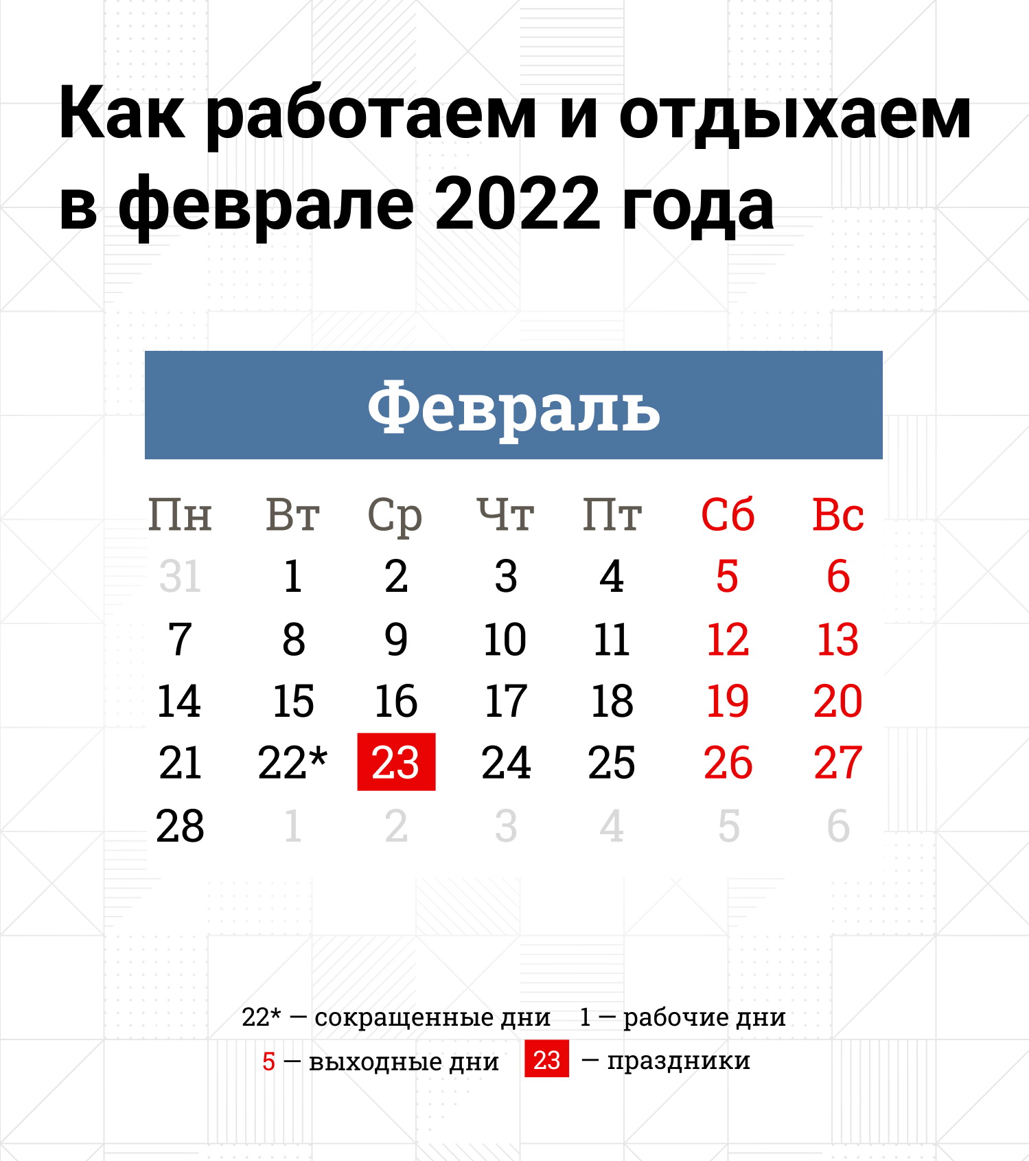 Сегодня начался последний месяц зимы. В этом месяце нас ждёт один выходной посреди недели, в среду- 23 февраля — День защитника Отечества.
