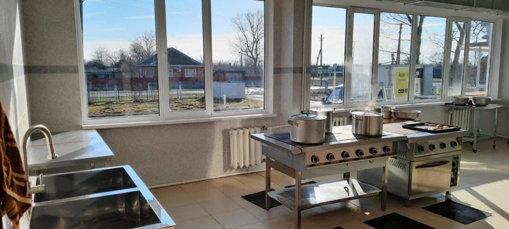 В СОШ № 13 поселка Щербиновский завершился капитальный ремонт пищеблока и столовой