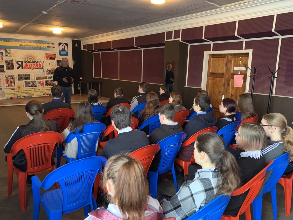В рамках месячника молодого избирателя 15 марта 2022 года в МКУК «Екатериновский сельский Дом культуры» прошла встреча старшеклассников СОШ № 6, с депутатом Совета Екатериновского сельского поселения Щербиновского района Андреем Ивановичем Малышенко.