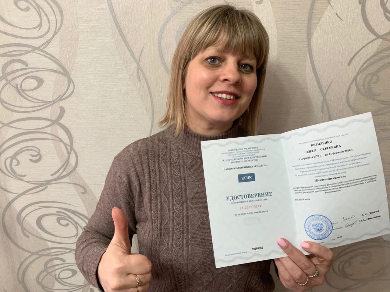В рамках федерального проекта "Творческие люди" национального проекта "Культура" в 2022 году отделу культуры администрации района предоставлена возможность обучения и повышения квалификации специалистов учреждений культуры муниципалитета. Обучение проводят Центры непрерывного образования и повышения квалификации творческих и управленческих кадров в сфере культуры при учреждениях высшего профессионального образования в сфере культуры Российской Федерации. Щербиновские специалисты будут повышать квалификацию на курсах Санкт-Петербургского, Пермского и Московского государственных институтов культуры, а также Краснодарского музыкального колледжа им. Н.А.Римского Корсакова.