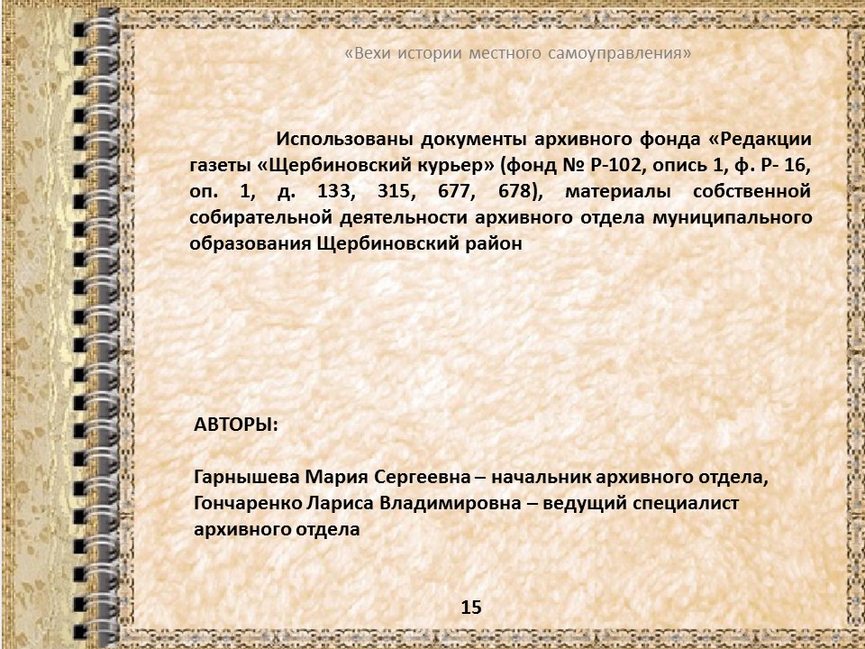 Из архивных документов..."Вехи истории местного самоуправления"