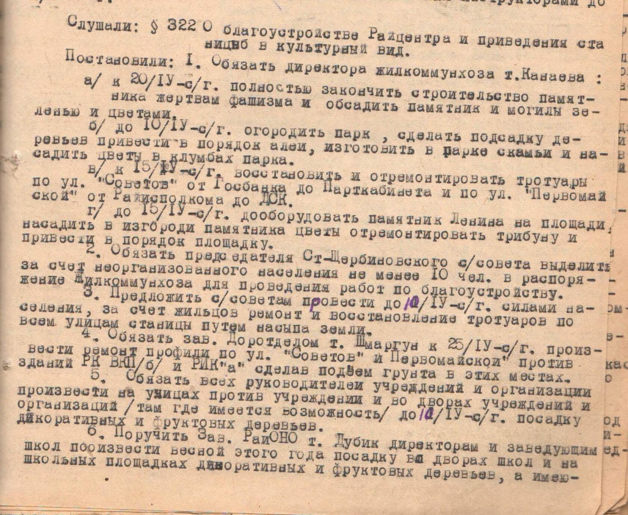Традицией для нашего кубанского народа была уборка своих подворий к празднику Светлой Пасхи. После зимы люди наводили порядок во дворах и конюшнях, убирались в хатах, снимали и стирали занавески с окон, выветривали перины, подушки и одежду из сундуков. После Октябрьской революции 1917 года работы по наведению порядка были приурочены к празднованию 1 мая – международного дня солидарности трудящихся. Появилась новая традиция – организовывать коллективные работы по наведению порядка – субботники. Листая старые районные газеты, мы видим, как во все времена наши станичники заботились о благоустройстве станицы и приведении ее в культурный вид.