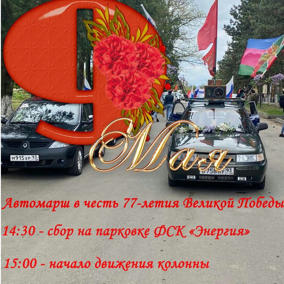 Уважаемые жители района! Приглашаем вас принять участие в автомарше «Во имя Победителей», который состоится 9 мая в 15.00. Сбор и формирование колонны начнется в 14.30 на парковочной зоне ФСК «Энергия» по адресу: станица Старощербиновская, улица Шевченко, 154/1. #ДеньПобеды #МояРоссия #Zамир #СилаVПравде #я_патриот #народпобедитель