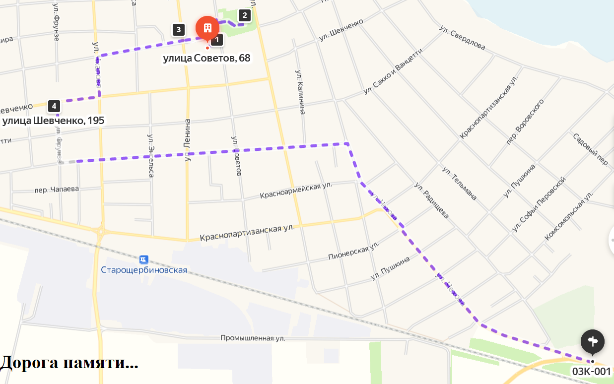 Информационный маршрут данного проекта проходит по местам исторической памяти станицы Старощербиновской: