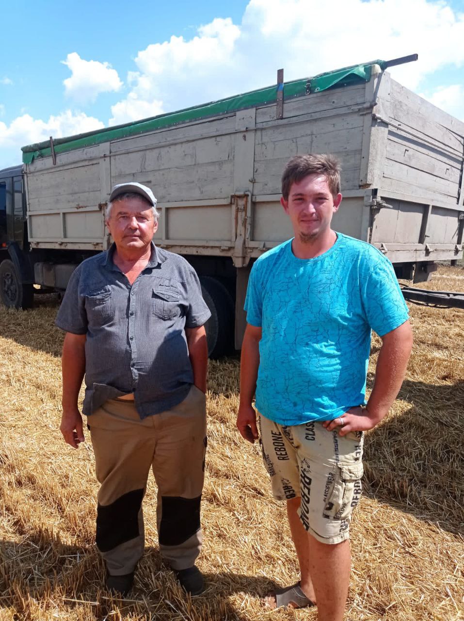 На территории района уже практически завершена кампания по уборке зерновых колосовых и зернобобовых культур урожая 2022 года. На сегодняшний день убрано 61,83 тыс.га зерновых колосовых и зернобобовых культур, что составляет более 97% уборочной площади, валовый сбор составляет 416,6 т.т. при средней урожайности 67,4 ц/га. На фотографии (слева направо): агроном Требушной Алексей и водитель Омельченко Виктор АО им. Т.Г.Шевченко.