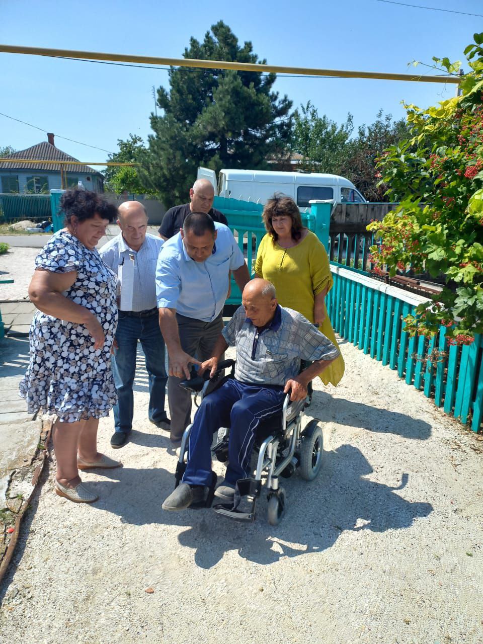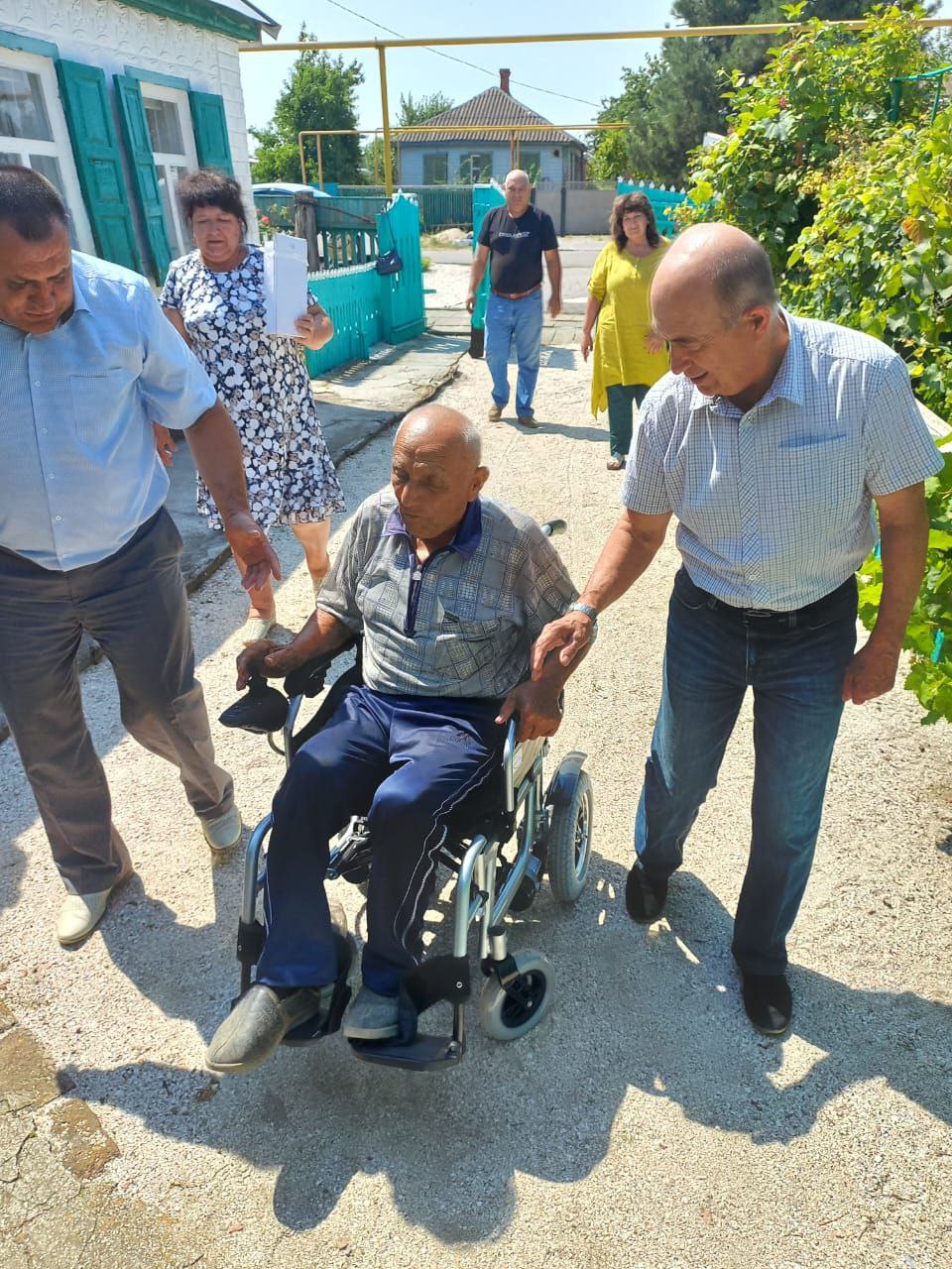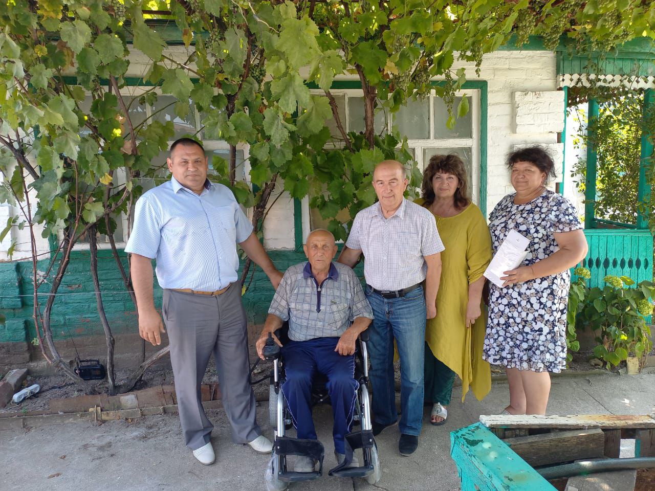 Сегодня исполняющий полномочия главы района Алексей Сапельников, председатель Щербиновского районного Совета ветеранов Михаил Кряжов и глава Глафировского сельского поселения Татьяна Недорез приехали в гости к нашему дорогому участнику Великой Отечественной войны Наконечнику Николаю Игнатьевичу. И приехали не с пустыми руками! Нашему Герою привезли новое кресло - коляску с электроприводом. 9 мая, во время поздравления, Николай Игнатьевич на вопрос о том, что ему необходимо, ответил: « У меня все есть. Но хотелось бы коляску, руки уже дают слабину». Проведена необходимая работа и вот, настоящий подарок доставлен нашему участнику ВОВ. Коляска приобретена за счёт средств Фонда социального страхования. Николай Игнатьевич очень рад и благодарит все службы, которые оперативно включились в решение его вопроса.