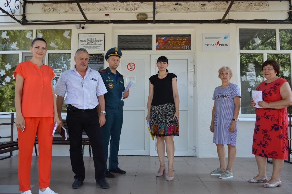 Рабочая группа, образованная для проверки готовности помещений, определенных для использования участковыми избирательными комиссиями при подготовке и проведении выборов Законодательного Собрания Краснодарского края седьмого созыва и муниципальных выборов, назначенных на единый день голосования 11 сентября 2022 года, обследовала помещения для голосования на соответствие их требованиям обеспечения антитеррористической защищенности, пожарной безопасности, условиям для беспрепятственного доступа к помещениям для голосования, нормативам технологического оборудования, позволяющего обеспечить реализацию избирательных прав граждан РФ, а так же в целях выявления и устранения возможных технических, технологических и иных недостатков.