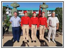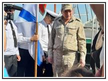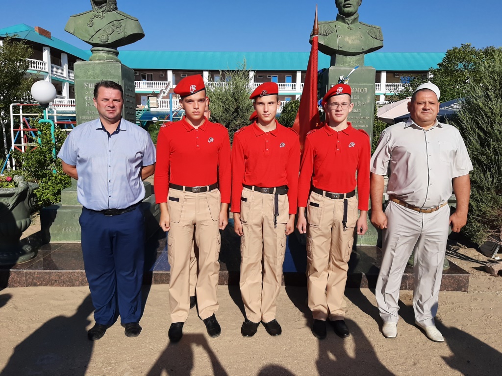 Возле памятника адмиралу Ушакову и адмиралу Нахимову почетным караулом встала знаменная группа Центра морской авиации г. Ейска.