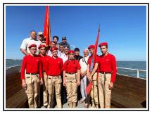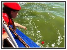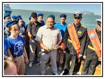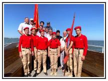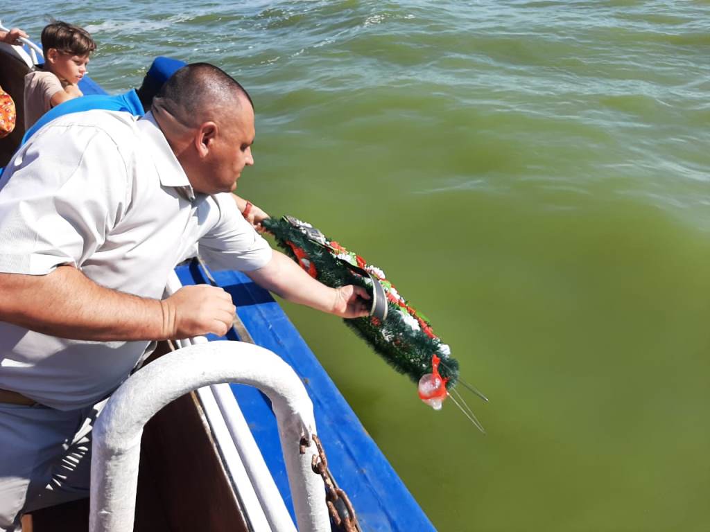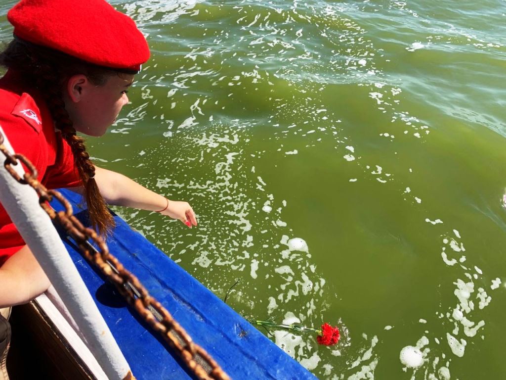 Почтили память погибших в авиакатастрофе минутой молчания. После чего на воду были спущены венок и цветы, затем были зажжены дымовые сигнальные огни.