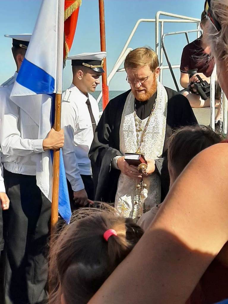 Затем собравшиеся вышли в море на место катастрофы АН-12 на корабле сопровождения.