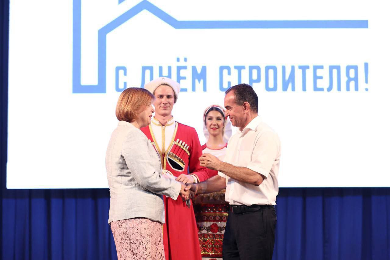 Сегодня исполняющий полномочия главы района Алексей Сапельников и начальник отдела по вопросам строительства, ЖКХ и транспорта Владимир Щербина приняли участие в торжественном мероприятии, посвящённом Дню строителя, которое прошло в городе Краснодаре. Представителей одной из ключевых отраслей экономики края с приближающимся профессиональным праздником поздравил губернатор региона Вениамин Кондратьев Вениамин Кондратьев наградил лучших работников отрасли. Медали «За выдающийся вклад в развитие Краснодарского края» III степени получили директор по строительству ООО «Инсити-Победа» Виталий Аношкин и главный инженер проекта ООО «САБ Констракшен» Сергей Полтавец. Почетное звание «Заслуженный строитель Краснодарского края» присвоили 12 представителям отрасли, трое получили почетные грамоты администрации региона, еще 20 – благодарности губернатора.