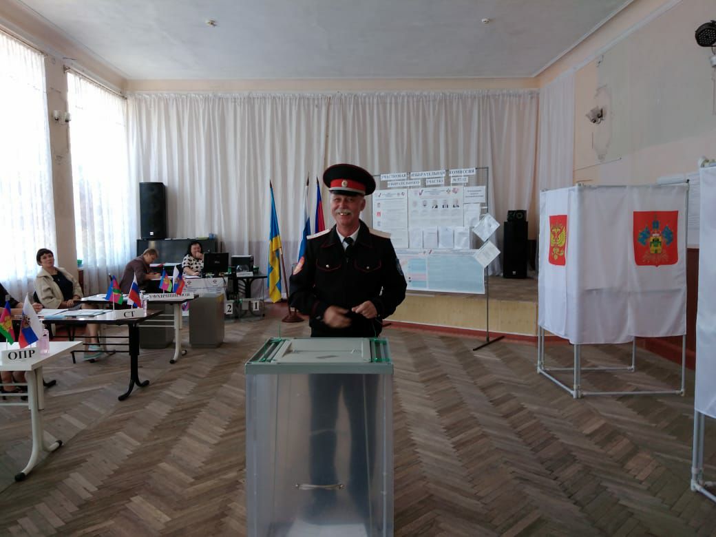 Сегодня, во второй день выборов, проголосовал атаман Глафировского хуторского казачьего общества Владимир Самсонов.