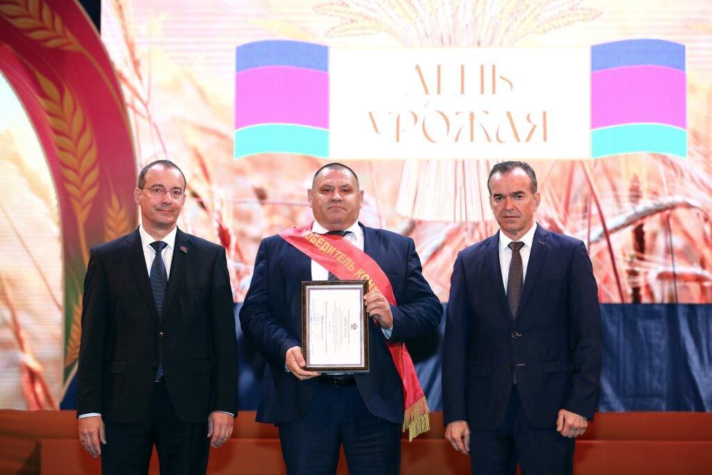 Администрация муниципального образования Щербиновский район награждена Дипломом администрации Краснодарского края «За заслуги в отрасли агропромышленного комплекса» по результатам ежегодного подведения итогов работы в отрасли в 2022 году. Наш район внес значительный вклад в обеспечение достижения высоких показателей агропромышленного комплекса Краснодарского края в растениеводстве по Северной природно-климатической зоне. Губернатор края Вениамин Кондратьев и спикер Законодательного Собрания края Юрий Бурлачко вручили Диплом исполняющему полномочия главы района Алексею Сапельникову сегодня, на торжественном мероприятии по подведению итогов Жатвы- 2022, которое прошло в городе Краснодаре. Передовиков агропромышленного комплекса поздравили полномочный представитель Президента РФ в ЮФО Владимир Устинов, губернатор Вениамин Кондратьев, Губернатор отметил, что своим напряженным трудом аграрии заслужили высокие награды и их результатами сегодня гордится вся Кубань. – Из битвы за урожай вы вновь вышли победителями. Сегодня кубанский каравай весит – 15 миллионов 100 тысяч тонн зерновых и зернобобовых. Собран рекордный урожай пшеницы – 10 миллионов 700 тысяч тонн. Такой результат мы получили в условиях новых вызовов – беспрецедентных санкций, трудностей с покупкой удобрений, обслуживанием сельхозтехники. Невзирая на это, аграрии сделали все, чтобы на столах жителей были качественные и натуральные продукты. Внесли весомый вклад в продовольственный суверенитет края и страны, – сказал Вениамин Кондратьев. Глава региона подчеркнул, что в Краснодарском крае впервые получили 1 миллион 300 тысяч тонн подсолнечника. А виноградари впервые за 15 лет собрали более 240 тысяч тонн винограда, внеся вклад в укрепление винодельческой отрасли.