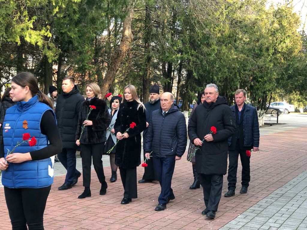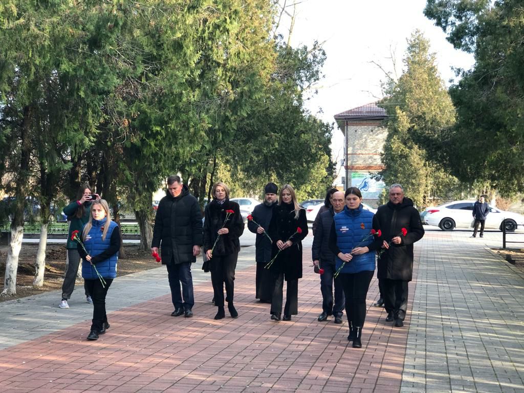 В станице Старощербиновской у мемориального комплекса в честь земляков, погибших в годы гражданской и Великой Отечественной войн и к памятнику труженикам тыла возложили цветы заместители главы Виктория Савина, Антонина Кочерга, Михаил Чернов, председатель Совета муниципалитета Михаил Кряжов, глава Старощербиновского сельского поселения Юрий Зленко, протоиерей Василий Кривов, мама Николая Белого, гвардии старшего лейтенанта, героически погибшего в ходе СВО, награжденного Орденом Мужества (посмертно), представители общественных объединений.