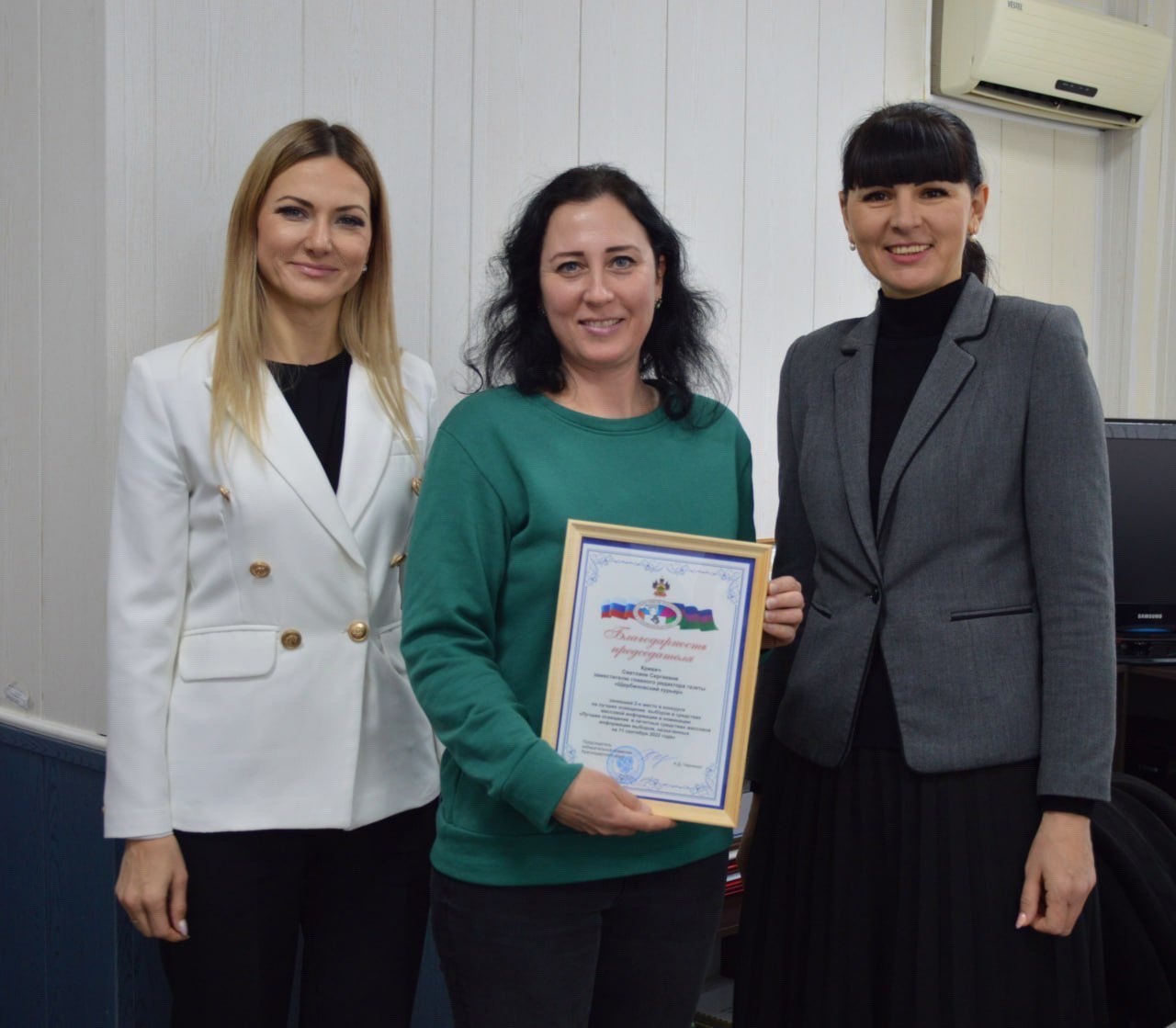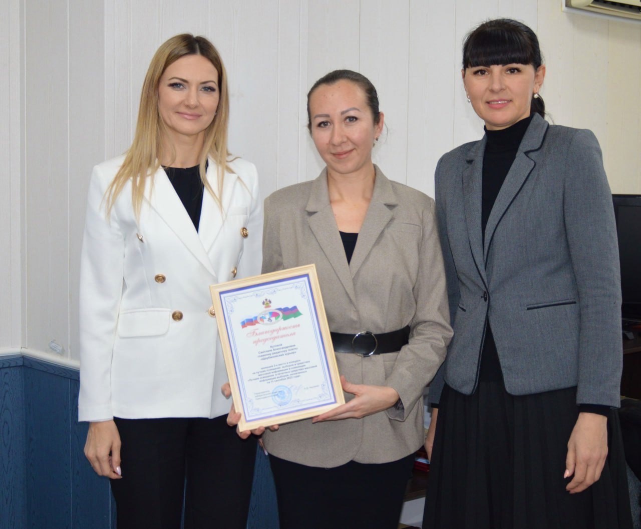 На встрече также были озвучены результаты краевого конкурса на лучшее освещение выборов в средствах массовой информации. Антонина Кочерга и Юлия Галкина вручили Благодарности председателя избирательной комиссии Краснодарского края главному редактору газеты Светлане Кутовой, заместителю редактора Виктории Кривич и корреспонденту Владимиру Крюкову.