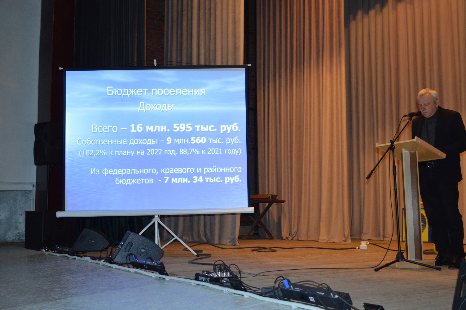 Об итогах работы за 2022 год и задачах на текущий год рассказал глава сельского поселения Дмитрий Ченокалов.В работе сессии приняли участие исполняющий полномочия главы района Михаил Чернов, заместители главы председатель Совета муниципалитета Михаил Кряжов, руководители учреждений, организаций района, руководители сельхозпредприятий, крестьянских (фермерских) хозяйств, ТОСовцы, жители поселка. Дмитрий Александрович отметил, что общий объем доходов бюджета Щербиновского сельского поселения за 2022 год составил 16 млн. 595 тыс. руб. Одним из важных событий года стало то, что в рамках государственной программы «Развитие культуры Краснодарского края» Щербиновскому сельскому поселению были выделены субсидии на укрепление материально-технической базы сельского Дома культуры. Из федерального, краевого и бюджета поселения было выделено порядка 3,5 млн. рублей на одежду сцены, приобретение кресел для зрительного зала, банкеток, звукового, видеопроекционного и светового оборудования. Дополнительно за счет средств бюджета поселения в Доме культуры поменяли окна (а это порядка 400 тысяч рублей), сделан внутренний ремонт зала. Что же касается жилищно-коммунальной сферы, то были произведены монтажные работы уличного освещения в п. Щербиновском на ул. Первомайская, ул. Строителей, ул. Советская, ул. Комсомольская, ул. Свердлова. На эти цели было направлено более 120 тыс. рублей. Заменено 22 светильника. В рамках реализации поручений Президента РФ по догазификации населенных пунктов в отчетном году газифицированы часть улицы Свердлова и улица Западная поселка Щербиновский.