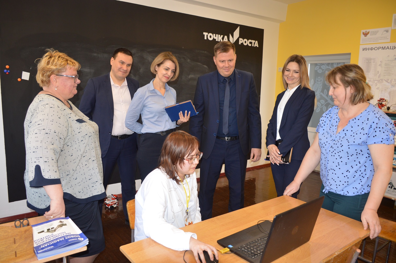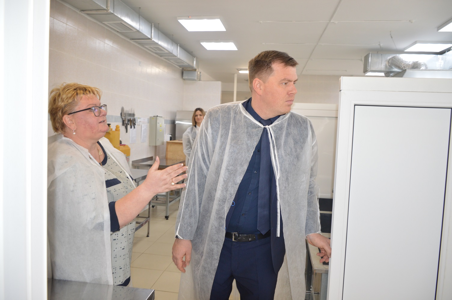 В СОШ № 13 осмотрены кабинеты Центра «Точка Роста» и новый пищеблок и столовая, которые открыли после капитального ремонта в 2022 году.